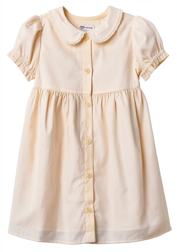 - Peter Pan collar and ruffle trim for a timeless, adorable look that appeals to parents and kids alike.